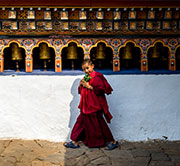 DrukgyelDzong – The smoke-smudged walls of DrukgyelDzong's four-story utse (central tower) still stand intact among the surrounding ruins. Located at the head of the Paro Valley, the once-magnificent DrukgyelDzong was built in 1649 and stood along a major route into Tibet for three centuries until it burned to the ground in a 1951 fire. The dzong's name, which translates as “Bhutan's Victory,” commemorates a 1644 defeat of Tibetan forces in this region. Today, a narrow path spirals up towards the dzong past the collapsed remains of a walled passage that once secured the dzong's water supply. Go through the gate to access a flagstoned courtyard once used for festivals. Beyond this lies the main body of the dzong, where wild strawberries and herbs sprout among the rubble.