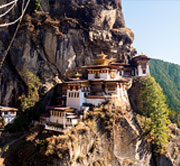 Tiger Nest - From a distance, Bhutan's most iconic building seems to float, weightless, halfway up a sheer cliff-face, 900 meters (3,000 feet) above the floor of the Paro Valley. As you wind your way breathlessly up the long, steep path towards TaktsangLhakhang, the monastery periodically reveals itself, rising out of the forest, closer and more solid with each re-appearance.